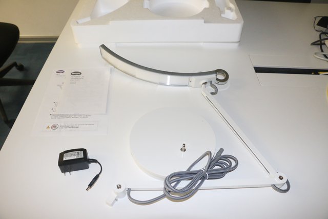 WiT護眼燈包裝拆解:外層郵包紙盒→內層產品包裝紙盒→泡沫包裝盒→部件塑料薄膜,層層保護,最后得到產品三個部件、說明書和便捷指南。