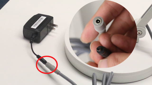 不要忘了把電源插頭與燈臂上的電源線連起來,這樣才能接通電源,雖然18W并不是一個大功率,但是由無線供電技術來實現還是比較難的。