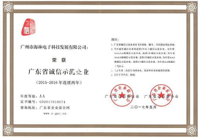 5月13日,我公司派員參加“2017年廣東省企業家活動日”,榮獲廣東省企業聯合會和廣東省企業家協會頒發的“2015-2016連續兩年廣東省誠信示范企業”證書,并成為“誠信公約會員單位”。本次活動以“敢于挑戰、改革轉型、穩中求進、善惠民生”為主題,鼓勵、引導全省企業在當前經濟形勢下,敢于面對挑戰,勇于轉型升級,穩健轉變經營發展方式。