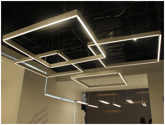 線條燈以其個性化、簡約化以及美觀化日益受消費者喜愛。本屆展會上,在商業照明展館,像日上光電、毅寧亮照明、三穩光電等企業推出商照線條燈。