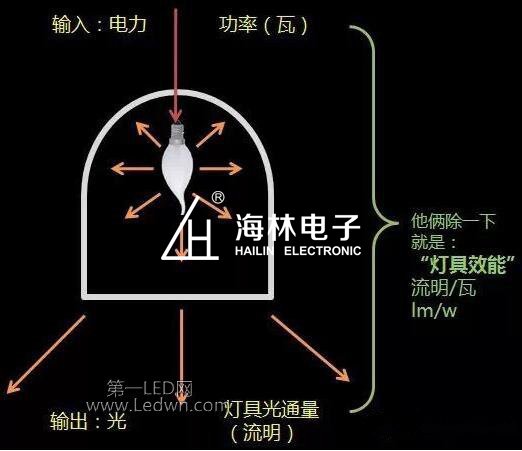 燈具效能=燈具發(fā)出的光通量/(光源功率+電器損耗)=光源發(fā)出的光通量*LOR/(光源功率+電器損耗)