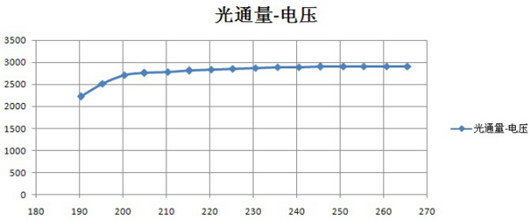 由圖中可見,采用這種自適應調節以后,在不同的輸入電壓范圍內,其輸入功率,輸出光通量和整體光效都基本上保持不變。
